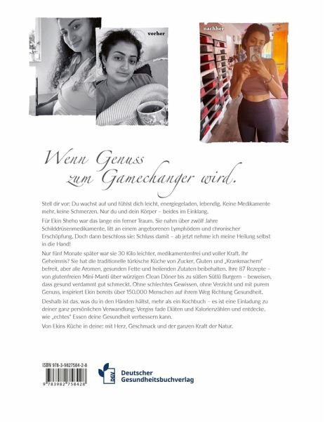 Clean Eating mit Ekin ist mehr als ein Kochbuch - es ist ein ehrlicher, praxisnaher Wegweiser zu natürlicher Ernährung und echter Transformation. Ekin Sheho hat mit einer radikal entzündungshemmenden Ernährung 30 Kilo verloren, ihre Schilddrüsenwerte stabilisiert und ihr Lymphödem entscheidend verbessert. Dieses Buch fasst ihre Erfahrung, ihr Wissen und ihre beliebtesten Rezepte erstmals strukturiert zusammen. Der Schwerpunkt liegt auf bewusster, unverarbeiteter Küche: glutenfrei, zuckerfrei, proteinreich, darmfreundlich und voller aromatischer Einflüsse aus der türkischen Heimat der Autorin. Neben fundiertem Hintergrundwissen zu Mikrobiom, Hormonen, Stoffwechsel und Detox-Faktoren bietet das Buch 87 alltagstaugliche Gerichte - von Basics über Frühstück, Dips, Vorspeisen und Hauptgerichte bis hin zu cleanen Süßspeisen. Mit klaren Schritt-für-Schritt-Anleitungen, Familientauglichkeit, Einkaufsliste, Vorratsschrank und vielen Tipps für schnelle, gesunde Mahlzeiten zeigt Ekin, wie Clean Eating ohne dogmatische Regeln funktioniert. Traditionelle türkische Gerichte werden neu gedacht - leicht, verträglich, nährstoffreich und modern. Ein inspirierendes Koch- und Gesundheitsbuch für alle, die sich vitaler fühlen, ihren Körper verstehen und nachhaltig abnehmen möchten - ohne Verzicht, Kalorienzählen oder Industrieprodukte.