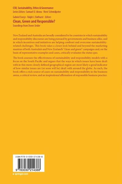 New Zealand and Australia are broadly considered to be countries in which sustainability and responsibility discourses are being pursued by governments and business alike, and in which incentives and initiatives are helping confront and overcome sustainability-related challenges. This book takes a closer look behind and beyond the marketing mantras of both Australia's and New Zealand's "clean and green" campaigns and, on the basis of representative examples and cases, critically evaluates the status quo.