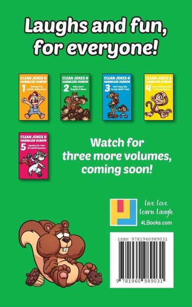 There's been a lot of chatter about Clean Jokes & Harmless Humor, Volume 2. Why? Because it's full of cheeky humor and acorny puns. Our emotive squirrel scampers through five delightful chapters of work jokes, elephant jokes, cat jokes, "Did you hear..." jokes, and Larry and Darryl. Get ready to snicker and chuckle. These gags will entertain even the toughest nut to crack. You don't have to forage for fun anymore, because we've gone out on a limb to provide you with a huge stash of laughs. What sets the Clean Jokes & Harmless Humor series apart from other joke books? In short, they're good clean fun. First, we start with jokes that actually make people laugh instead of ho-hum, unfunny text to fill pages. Second, we create a quality book, which is organized and colorful and includes lots of funny illustrations. Third, and most important of all, these jokes are safe for all eyes and hearts. We like to laugh, but we love the Lord. So Clean Jokes & Harmless Humor avoids rude, offensive, or otherwise inappropriate jest. Some of these jokes are silly, and some are witty. Some will make you chuckle, and others will elicit uproarious laughter. All will amuse lighthearted readers without crossing the line of good taste. Check out the other books in this series too, for more comic relief.