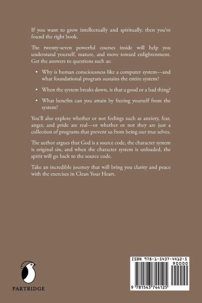 If you want to grow intellectually and spiritually, then youve found the right book. The twenty-seven powerful courses inside will help you understand yourself, mature, and move toward enlightenment. Get the answers to questions such as: Why is human consciousness like a computer systemand what foundational program sustains the entire system? When the system breaks down, is that a good or a bad thing? What benefits can you attain by freeing yourself from the system? Youll also explore whether or not feelings such as anxiety, fear, anger, and pride are realor whether or not they are just a collection of programs that prevent us from being our true selves. The author argues that God is a source code, the character system is original sin, and when the character system is unloaded, the spirit will go back to the source code. Take an incredible journey that will bring you clarity and peace with the exercises in Clean Your Heart.
