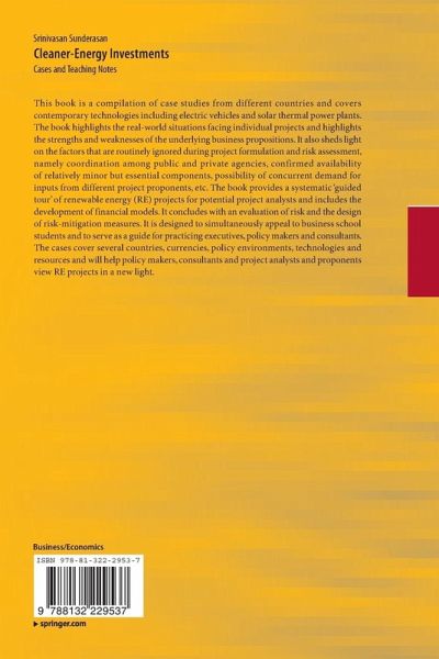 This book is a compilation of case studies from different countries and covers contemporary technologies including electric vehicles and solar thermal power plants. The book highlights the real-world situations facing individual projects and highlights the strengths and weaknesses of the underlying business propositions. It also sheds light on the factors that are routinely ignored during project formulation and risk assessment, namely coordination among public and private agencies, confirmed availability of relatively minor but essential components, possibility of concurrent demand for inputs from different project proponents, etc. The book provides a systematic 'guided tour' of renewable energy (RE) projects for potential project analysts and includes the development of financial models. It concludes with an evaluation of risk and the design of risk-mitigation measures. It is designed to simultaneously appeal to business school students and to serve as a guide for practicing executives, policy makers and consultants. The cases cover several countries, currencies, policy environments, technologies and resources and will help policy makers, consultants and project analysts and proponents view RE projects in a new light.