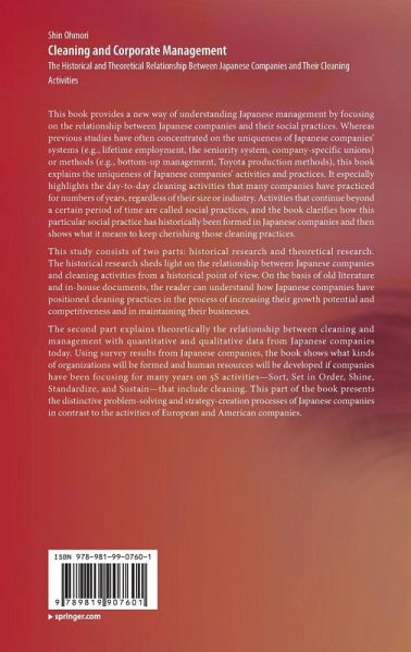 The second part explains theoretically the relationship between cleaning and management with quantitative and qualitative data from Japanese companies today. Using survey results from Japanese companies, the book shows what kinds of organizations will be formed and human resources will be developed if companies have been focusing for many years on 5S activities-Sort, Set in Order, Shine, Standardize, and Sustain- that include cleaning. This part of the book presents the distinctive problem-solving and strategy-creation processes of Japanese companies in contrast to the activities of European and Americancompanies.
