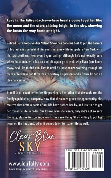 She came looking for her future. He was hiding from a past. When their worlds collided-it was fireworks. Retired Delta Force Soldier Nelson Snow has done his best to put the horrors of his last mission behind him and start a new life in upstate New York with his two brothers. He's even begun dating, although he's not exactly sure where he stands with his on-and-off girlfriend, who lives four hours away, he'd like to find out. That is until his past comes waltzing through his place of business and threatens to destroy his present and a future he had no idea he wanted. Brandi Grant spent her entire life proving to her father that she could run the family's publishing company. Now that she's been given the opportunity, she realizes that certain parts of her life have passed her by, and it's time to get her romantic life in order. She knows who she wants, only she's not so sure the sexy, elusive Nelson Snow wants the same thing. She's willing to put her heart on the line...and, when it comes down to it...her life as well. Love in the Adirondacks-where hearts come together like the moon and the stars shining bright in the sky, showing the boats the way home at night.