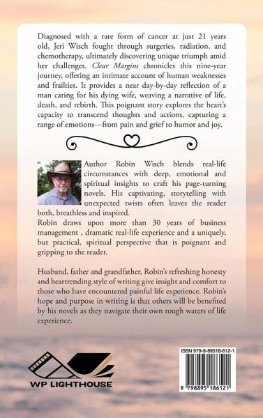 Diagnosed with a rare form of cancer at just 21 years old, Jeri Wisch fought through surgeries, radiation, and chemotherapy, ultimately discovering unique triumph amid her challenges. Clear Margins chronicles this nine-year journey, offering an intimate account of human weaknesses and frailties. It provides a near day-by-day reflection of a man caring for his dying wife, weaving a narrative of life, death, and rebirth. This poignant story explores the heart's capacity to transcend thoughts and actions, capturing a range of emotions-from pain and grief to humor and joy.