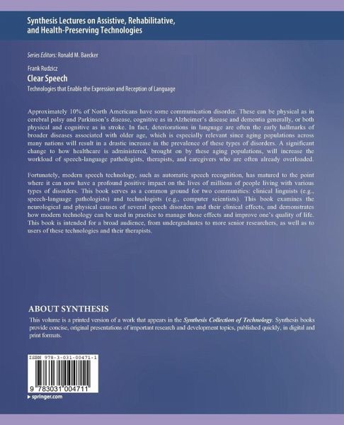 Approximately 10% of North Americans have some communication disorder. These can be physical as in cerebral palsy and Parkinson's disease, cognitive as in Alzheimer's disease and dementia generally, or both physical and cognitive as in stroke. In fact, deteriorations in language are often the early hallmarks of broader diseases associated with older age, which is especially relevant since aging populations across many nations will result in a drastic increase in the prevalence of these types of disorders. A significant change to how healthcare is administered, brought on by these aging populations, will increase the workload of speech-language pathologists, therapists, and caregivers who are often already overloaded. Fortunately, modern speech technology, such as automatic speech recognition, has matured to the point where it can now have a profound positive impact on the lives of millions of people living with various types of disorders. This book serves as a common ground for two communities: clinical linguists (e.g., speech-language pathologists) and technologists (e.g., computer scientists). This book examines the neurological and physical causes of several speech disorders and their clinical effects, and demonstrates how modern technology can be used in practice to manage those effects and improve one's quality of life. This book is intended for a broad audience, from undergraduates to more senior researchers, as well as to users of these technologies and their therapists.