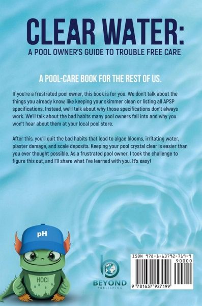 Have you struggled with pool maintenance? Finally a Pool-Care book for the rest of us! If you're a frustrated pool owner, this book is for you. We don't talk about the things you already know, like keeping your skimmer clean or listing all APSP specifications. Instead, we'll talk about why those specifications don't always work. We'll talk about the bad habits many pool owners fall into and why you won't hear about them at your local pool store. After this, you'll quit the bad habits that lead to algae blooms, irritating water, plaster damage, and scale deposits. Keeping your pool crystal clear is easier than you ever though possible. As a frustrated pool owner, I took the challenge to figure this out, and I'll share what I've learned with you. It's easy!