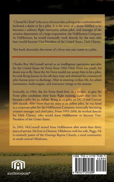 "Cleared To Climb" is the story of a man who, as long as he could remember, harbored a desire to be a pilot. It is the story of a desire fulfilled as he becomes a military flight instructor, airline pilot, and manager of the aviation department of a large corporation, the Halliburton Company. At Halliburton, he would eventually work directly for the man who later would become Vice-President of the United States, Dick Cheney. This book chronicles the events of a forty-one year career as a pilot.