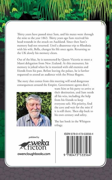 Thirty years have passed since Sam, and his mates went through the mist to the year 1863. Thirty years ago Sam received his head wounds in the attack on Auckland. Since then Sam's memory had not returned. Until a disastrous trip to Rhodesia with his wife, Bella, changes his life once again. Returning to the UK slowly his memory clears. Out of the blue, he is summoned by Queen Victoria to meet a Maori delegation from New Zealand. At this encounter, his memory is jolted when he is reunited with old enemies and friends from his past. Before leaving the palace, he is further requested to attend an audience with the Prince Regent. The story that comes from this meeting will send dangerous consequences around the Empire. Government agents don't want him or his party to arrive at their destination, and Sam needs all his wits, including the help from his friends to keep everyone safe. His priority, find the cave and wait for the mist if it is still there. Then slip back to his own century and safety.