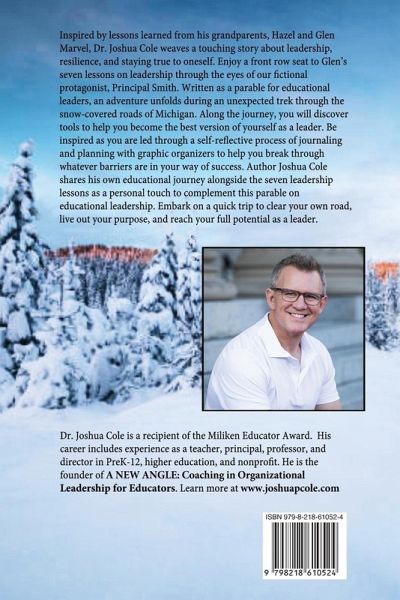 Inspired by lessons learned from his grandparents, Glen and Hazel Marvel, Dr. Joshua Cole weaves a touching story about leadership, resilience, and staying true to oneself. Enjoy a front row seat to Glen's seven lessons on leadership through the eyes of our fictional protagonist, Principal Smith. Written as a parable for educational leaders, an adventure unfolds during an unexpected trek through the snow-covered roads of Michigan as Principal Smith strives to get everyone home safely after an unexpected blizzard. Along the journey, you will discover tools to help you become the best version of yourself as a leader. Be inspired as you are led through a self-reflective process of journaling and planning to break through whatever barriers are in your way of success. Author Joshua Cole shares his own educational journey alongside the seven leadership lessons as a personal touch to complement this parable on educational leadership. Inside the book, you will find graphic organizers to guide your process of personal and professional growth. Embark on a quick trip to clear your own road, live out your purpose, and reach your full potential as a leader.