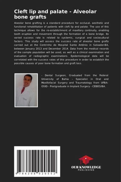Alveolar bone grafting is a standard procedure for occlusal, aesthetic and functional rehabilitation of patients with cleft lip and palate. The use of this technique allows for the re-establishment of maxillary continuity, enabling tooth eruption and movement through the formation of a bone bridge. Its varied success rate is related to systemic, surgical and sociocultural factors. This study will assess the success rate of alveolar bone grafts carried out at the Centrinho do Hospital Santo Antônio in Salvador-BA, between January 2013 and December 2014. Data from the medical records of the sample population will be used, as well as a clinical examination and evaluation of radiographic examinations. Epidemiological data will be correlated with the success rates of this procedure in order to establish the possible causes of poor bone formation and graft loss.