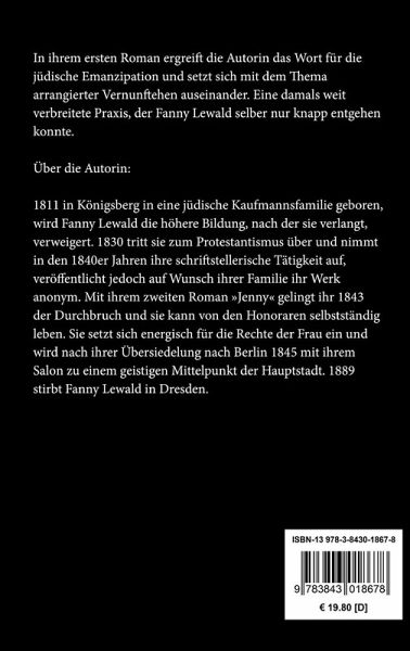 In ihrem ersten Roman ergreift die Autorin das Wort für die jüdische Emanzipation und setzt sich mit dem Thema arrangierter Vernunftehen auseinander. Eine damals weit verbreitete Praxis, der Fanny Lewald selber nur knapp entgehen konnte.