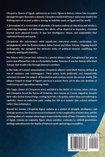 Cleopatra, Queen of Egypt, epitomizes an iconic figure in history whose tale resonates through the ages. Born into a dynasty, Cleopatra wielded influence and power amidst the shifting tides of ancient politics, leaving an indelible mark on Egypt and the world. A descendant of a revered line of pharaohs, Cleopatra embraced education and intellect, mastering languages and diplomacy. Her allure, often depicted as legendary, extended beyond mere physical beauty; it was her intelligence, charm, and adaptability that captivated hearts and minds. Cleopatra's life intertwined with significant historical events, particularly her entanglement with the Roman leaders Julius Caesar and Mark Antony. Aligning herself strategically, she navigated the intricate webs of political turmoil, solidifying her authority and Egypt's stability. Her liaison with Caesar bore witness to a pivotal alliance that strengthened her grip on power and affirmed her role as a formidable leader. However, it was her liaison with Mark Antony that would echo through history's corridors. In the wake of Caesar's assassination, Cleopatra's alliance with Mark Antony defined an era of opulence and extravagance. Their union, both politically and romantically entwined, became the subject of fascination and scrutiny across the ancient world. The alliance forged an image of Egypt's queen as a potent force, yet it also cast shadows of controversy and opposition among rivals. The tragic climax of Cleopatra's story unfolded in the Battle of Actium, where Antony and Cleopatra faced the forces of Octavian, later known as Caesar Augustus. Despite their valor, defeat loomed large, sealing their fate. Cleopatra, rather than surrendering to captivity, chose an audacious path, ending her life in a manner that echoed defiance rather than submission. Beyond her demise, Cleopatra's legacy endures as a symbol of strength, intelligence, and strategic prowess. Her story serves as a testament to the complexities of power, love, and the enduring allure of a woman whose legacy transcends the sands of time. Cleopatra, the Queen of Egypt, remains an enigmatic figure whose narrative continues to enthrall generations, inviting exploration into the depths of history's most captivating personalities.