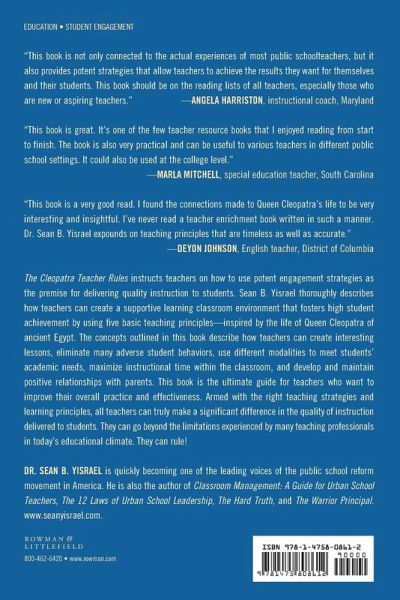 The concepts outlined in this book describes how teachers can create interesting lessons, eliminate many adverse student behaviors, use different modalities to meet students' academic needs, maximize instructional time within the classroom, and develop and maintain positive relationships with parents. This book is the ultimate guide for teachers who want to improve their overall practice and effectiveness. Hear Dr. Sean Yisrael's talk on The Cleopatra Teacher Rules at http://www.youtube.com/watch?v=S9m49M-oK0M
