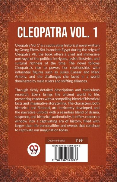 Cleopatra Vol 1' is a captivating historical novel written by Georg Ebers. Set in ancient Egypt during the reign of Cleopatra VII, the book offers a vivid and immersive portrayal of the political intrigues, lavish lifestyles, and cultural richness of the time. The novel follows Cleopatra's rise to power, her relationships with influential figures such as Julius Caesar and Mark Antony, and the challenges she faced in a world dominated by male rulers and shifting alliances. Through richly detailed descriptions and meticulous research, Ebers brings the ancient world to life, presenting readers…mehr