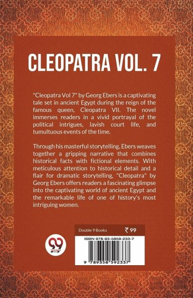"Cleopatra Vol 7" by Georg Ebers is a captivating tale set in ancient Egypt during the reign of the famous queen, Cleopatra VII. The novel immerses readers in a vivid portrayal of the political intrigues, lavish court life, and tumultuous events of the time. Through his masterful storytelling, Ebers weaves together a gripping narrative that combines historical facts with fictional elements. With meticulous attention to historical detail and a flair for dramatic storytelling, "Cleopatra" by Georg Ebers offers readers a fascinating glimpse into the captivating world of ancient Egypt and the remarkable life of one of history's most intriguing women.…mehr