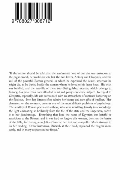 "If the author should be told that the sentimental love of our day was unknown to the pagan world, he would not cite last the two lovers, Antony and Cleopatra, and the will of the powerful Roman general, in which he expressed the desire, wherever he might die, to be buried beside the woman whom he loved to his latest hour. His wish was fulfilled, and the love-life of these two distinguished mortals, which belongs to history, has more than once afforded to art and poesy a welcome subject. In regard to Cleopatra, especially, life was surrounded with an atmosphere of romance bordering on the fabulous. Even her bitterest foes admire her beauty and rare gifts of intellect. Her character, on the contrary, presents one of the most difficult problems of psychology. The servility of Roman poets and authors, who were unwilling frankly to acknowledge the light emanating so brilliantly from the foe of the state and the Imperator, solved it to her disadvantage. Everything that bore the name of Egyptian was hateful or suspicious to the Roman, and it was hard to forgive this woman, born on the banks of the Nile, for having seen Julius Cæsar at her feet and compelled Mark Antony to do her bidding. Other historians, Plutarch at their head, explained the enigma more justly, and in many respects in her favour."
