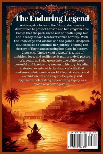 The Enduring Legend As Cleopatra looks to the future, she remains determined to protect her son and her kingdom. She knows that the path ahead will be challenging, but she is ready to face whatever comes her way. With the knowledge and wisdom she has gained, Cleopatra stands poised to continue her journey, shaping the destiny of Egypt and securing her place in history. "Cleopatra: The Dawn of a Queen" is a tale of ambition, love, and resilience. It paints a vivid picture of a young girl who grows into one of the most powerful and fascinating women in history, blending historical events with the drama of a life that continues to intrigue the world. Cleopatra's survival and hidden life add a layer of mystery and inspiration, celebrating her enduring legacy as a queen who never gave up.