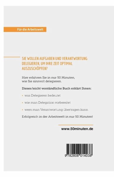 Effektiv Delegieren ¿ in nur 50 Minuten Sie organisieren ein großes Projekt und können die Arbeit nicht alleine schaffen? Sie wollen Ihre Mitarbeiter wertschätzen und motivieren? Beides lässt sich mithilfe von gut geplanter Delegation lösen. In diesem Buch lernen Sie, wie alle Beteiligten vom Delegieren profitieren und wie Sie mit Hindernissen umgehen können. Mit den praktischen Methoden und den Beispielen können Sie bei Ihrer nächsten Delegation voll durchstarten! Nach 50 Minuten können Sie: ¿ einschätzen, wann Delegation sinnvoll ist ¿ den richtigen Mitarbeiter für Ihre Delegation auswählen ¿ Methoden zum Delegieren sicher anwenden Starten Sie mit diesen praktischen Tipps voll durch! Über 50MINUTEN.DE Für die Arbeitswelt Was bringt Sie im Job weiter? Die Serie Für die Arbeitswelt der Reihe 50Minuten ist für alle geeignet, die sich ¿ egal auf welchem Abschnitt ihrer Karriere ¿ neue persönliche und berufliche Kompetenzen aneignen, ihr Potenzial optimal ausschöpfen oder einfach ihre Work-Life-Balance hinterfragen wollen. Unsere kompakten Titel enthalten nicht nur eine von Experten erstellte Übersicht über die relevante Theorie, sondern auch konkrete Anleitungen, die von zahlreichen Beispielen unterstützt werden. Die einfache und leicht verständliche Formulierung der komplexen Sachverhalte ist somit der ideale Ausgangspunkt für Angestellte, Arbeitgeber und Arbeitssuchende.