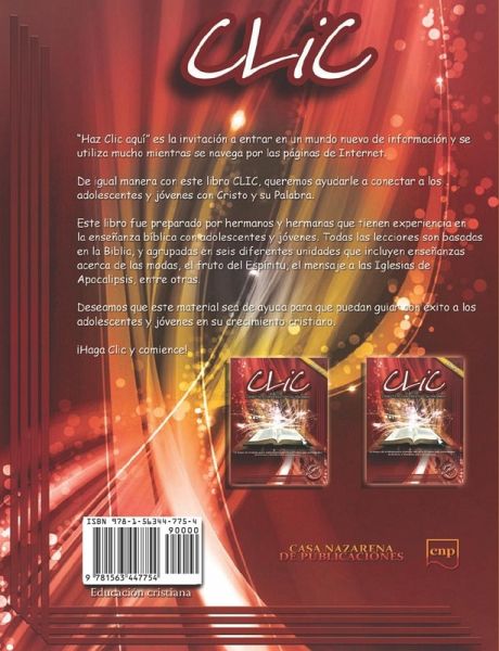 Nos sentimos desafiados al saber que personas como usted han adquirido este libro. La tarea de educar a las y los adolescentes y jóvenes no es fácil y debemos ser muy cuidadosos al buscar el material para hacerlo. Le ayudará saber que el presente material está basado en enseñanzas bíblicas y ha sido preparado por un equipo internacional de personas capacitadas en diferentes disciplinas pero con el común denominador de conocer y amar a los adolescentes y jóvenes de sus iglesias. Las 52 lecciones se han dividido en siete unidades temáticas. No todas las unidades tienen el mismo número de lecciones, pues varían de acuerdo a los temas tratados. Considerando las características y necesidades de las etapas de la adolescencia y la juventud, este libro se ha diseñado para dos grupos de edades: De 12 a 17 años y de 18 a 23 años. Usted tiene la libertad de adaptarlo de acuerdo a las necesidades de su clase de escuela dominical o grupo de estudio bíblico en su iglesia local. El libro contiene el desarrollo de las lecciones y en cada una de ellas encontrará las siguientes secciones: ¿ El Objetivo, que indica lo que se desea lograr en el alumno. ¿ La sección Conéctate, corresponde a la introducción de la lección y se sugieren actividades introductorias a los temas planteados. ¿ ¡A navegar! es la sección donde se desarrolla la lección en sí. ¿ La sección Descargas incluye el desarrollo de las actividades prácticas que sus alumnas y alumnos realizarán en su hoja de trabajo. El anhelo es que las alumnas y los alumnos mediante el desarrollo de estas actividades fijen en su mente y corazón los principios fundamentales del tema. ¿ Finalmente, Advertencia, es un aviso que aparece al inicio y al final de cada lección. La del inicio le ayudará a recordar que debe comenzar la clase recordando lo que se trató la semana anterior. El seguimiento es básico para el cumplimiento de la unidad. La ventana de Advertencia del final le recordará trabajar con la sección ¡Vamos al chat! que aparece en las hojas de trabajo para los alumnos. Junto a este libro para el maestro, hemos desarrollado dos libros para alumnos, los cuales son apropiados a su edad, uno para los alumnos de 12 a 17 y otro para los alumnos de 18 a 23 años. En estos libros, se incluyen las 52 Hojas de trabajo correspondientes a cada lección, donde usted encontrará las siguientes secciones: ¿ Conéctate. Una parte importante para crecer en nuestra vida cristiana es la memorización de textos bíblicos. En especial en la edad que tienen sus alumnas y alumnos. Por ello se sugiere animarles a memorizar el texto de cada lección. En la página 7 hay algunas ayudas para que la memorización de textos sea amena. ¿ Descargas. Son las actividades prácticas que sus alumnos y alumnas desarrollarán al final o durante la lección, incluye, cuestionarios, crucigramas, sopa de letras, entre otras. Usted puede fotocopiar las hojas de trabajo de acuerdo a la cantidad de personas en su grupo. ¿ ¡Vamos al Chat! Es el reto o desafío personal que sus alumnos y alumnas deberán cumplir durante la semana. El objetivo es animarles a poner en práctica lo aprendido en la clase y tomar decisiones firmes en su propia vida. ¿ Sabías que... Se refiere a datos relevantes y curiosos respecto al tema que se estudió en clase. Es nuestro deseo que este material sea de mucha ayuda para su ministerio con las y los adolescentes y jóvenes de su iglesia local; que usted pueda guiarlos en el aprendizaje acerca de las enseñanzas de Jesús, ejemplo de personajes bíblicos, los diez mandamientos, entre otros temas. Finalmente queremos pedirle que por favor llene la hoja de encuesta que aparece al final del libro y nos la haga llegar. Sus apreciaciones nos ayudarán a ser más efectivos en la preparación de futuros materiales y en la tarea de ¡conectar a esta generación con la Palabra de Dios!