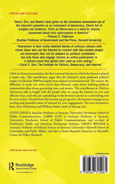 This examines the first national election in which the Internet played a major role. The contributors argue that the Internet's most profound political impact on Election 2000 has largely been missed or underestimated. The reason: the difference it made was more social than electoral, more about building political communities than about generating votes and money.