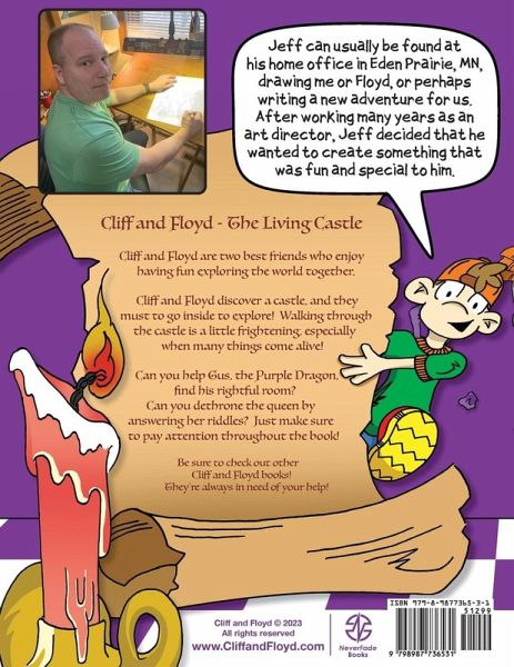 Cliff and Floyd - The Living CastleCliff and Floyd are two best friends who enjoy having fun exploring the world together.Cliff and Floyd discover a castle, and they must to go inside to explore! Walking through the castle is a little frightening, especially when many things come alive!Can you help Gus, the Purple Dragon, find his rightful room? Can you dethrone the queen by answering her riddles? Cliff and Floyd need your help! Just make sure to pay attention throughout the book! Be sure to check out other Cliff and Floyd books! Ages: 5 - 10kids younger would love looking at the illustrations and have it read to them!Be sure to check out other Cliff and Floyd adventure books!