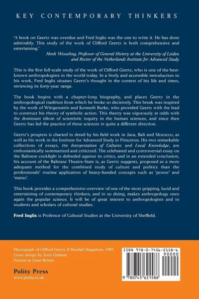 'A book on Geertz was overdue and Fred Inglis was the one to writeit. He has done admirably. This study of the work of CliffordGeertz is both comprehensive and entertaining.' Henk Wesseling,Professor of General History at the University of Leiden and Rectorof the Netherlands Institute for Advanced Study