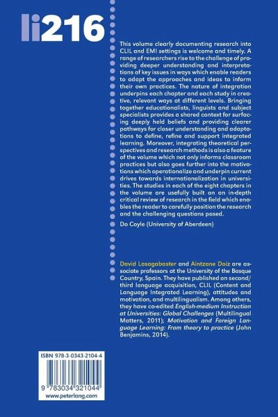 This volume clearly documenting research into CLIL and EMI settings is welcome and timely. A range of researchers rise to the challenge of providing deeper understanding and interpretations of key issues in ways which enable readers to adapt the approaches and ideas to inform their own practices. The nature of integration underpins each chapter and each study in creative, relevant ways at different levels. Bringing together educationalists, linguists and subject specialists provides a shared context for surfacing deeply held beliefs and providing clearer pathways for closer understanding and adaptations to define, refine and support integrated learning. Moreover, integrating theoretical perspectives and research methods is also a feature of the volume which not only informs classroom practices but also goes further into the motivations which operationalize and underpin current drives towards internationalization in universities. The studies in each of the eight chapters in the volume are usefully built on an in-depth critical review of research in the field which enables the reader to carefully position the research and the challenging questions posed. (Do Coyle, University of Aberdeen)
