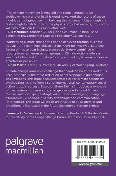 Climate change remains a challenge that needs to be addressed at its core, particularly the rapid reduction of anthropogenic greenhouse gas emissions. This book discusses strategies for climate actions by synthesizing insights from a set of international 'contemporary social action group's' surveys. Based on these Delina introduces a synthesis of mechanisms for generating change, designed around 5 main themes: relationships (relating); value-based messages (messaging); alternatives (visioning); diversity (webbing); and communication (interacting). This book will be of great value to all academics and practitioners interested in the future development of our climate.