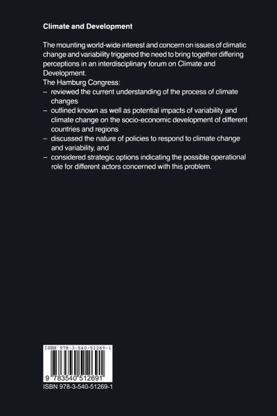 1 Overview: Report of the Hamburg Congress.- The Highlights of Deliberations.- The Hamburg Manifesto.- The Hamburg Action Plan.- 2 The Larger Perspectives.- 2.1 Message of UN Secretary General.- 2.2 Opening Speech.- 2.3 Opening Lecture: Climate, Society and the Historical Development.- 2.4 Opening Speech.- 2.5 Statement.- 2.6 Environmental Degradation - a Threat to Development.- 2.7 Possible Policies and Options in the European Community to Respond to Climatic Changes.- 2.8 Political Perception of Climate Change: Still Chalk on the White Wall?.- 2.9 Climatic Change - Its Political Challenge to the International Community.- 3 The Scientists' Perceptions.- 3.1 Climate and Development: Scientific Efforts and Assessment - The State of the Art.- 3.2 Programmes and Co-operation in Climatic Research - a Means to the Understanding of the Climate System as a Requirement to Cope with the Climate Issue.- 3.3 To Limit and to Adjust: Some Human Dimensions of Global Climatic Change.- 3.4 Some Strategies of Response in Agriculture to Changes of Climate.- 3.5 Climate Variability, Climate Change and the Development Process in Sub-Saharan Africa.- 3.6 Modelling the Climatic Effects of Trace Gases: Reduction Strategy and Options for a Low Risk Policy.- 3.7 Contributions to the Atmospheric CO2 Increase by Changes in the Land Biosphere: Analysis of the Past and Present, Including Possible Future Developments.- 3.8 Long Range Strategic Concepts to Reduce Drought Damages to Agriculture.- 3.9 Energy Options and Climatic Effects.- 3.10 Anthropogenic Climatic Changes.- 3.11 Climate Change - Secular Trends in Urban Temperature.- 4 The Industry Point View.- 4.1 Industry's Attitude BDJ.- 4.2 Climatic Risks and the Role of Energy Use.- 4.3 A UNICE Perspective on the Greenhouse Effect.-5 Views of Non-governmental Organisations.- 5.1 Responding to Climatic Change: The Crucial Role of the NGOs.- 5.2 Strategies and Recommendations for the Protection of the Tropical Rainforests.- 5.3 Escaping the Heat Trap: Policies to Prevent Climate Change A statement at the Hamburg Congress.- 6 Concerns of Developing Countries.- 6.1 Social Impacts of Climatic Variations, a Developing Region's Viewpoint.- 6.2 Drought in the Brazilian Northeast: Some Features of its Socio-Economic Impact.- 6.3 Summary of Views of Developing Country Participants Statement at the Hamburg Congress.- 7 International Initiatives.- 7.1 Strategies to Respond to Climate Changes - the Role of International Organisations.- 7.2 Climate and Development: Agricultural Practices and Water Resources.- 7.3 Climate Change and Human Health.- 7.4 Climate Change: Roles of UNESCO and IOC with Particular Reference to the Ocean.- 7.5 An Overview of International Developments, Trends and Actions.- 8 Where do we go from here?.- Where do we go from here?.- United Nations General Assembly Resolution.