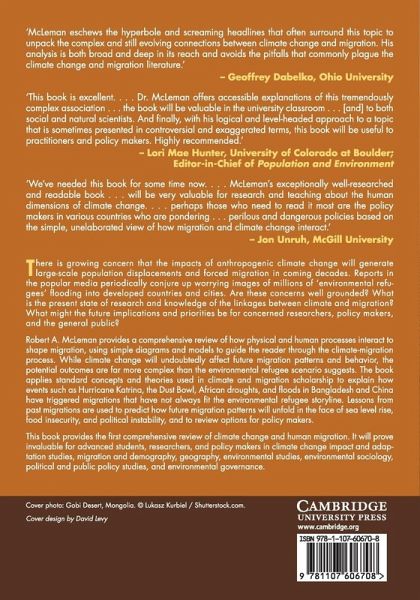 Studies warn that global warming and sea level rise will create hundreds of millions of environmental refugees. While climate change will undoubtedly affect future migration patterns and behavior, the potential outcomes are more complex than the environmental refugee scenario suggests. This book provides a comprehensive review of how physical and human processes interact to shape migration, using simple diagrams and models to guide the researcher, policy maker and advanced student through the climate-migration process. The book applies standard concepts and theories used in climate and migration scholarship to explain how events such as Hurricane Katrina, the Dust Bowl, African droughts, and floods in Bangladesh and China have triggered migrations that haven't always fit the environmental refugee storyline. Lessons from past migrations are used to predict how future migration patterns will unfold in the face of sea level rise, food insecurity, political instability, and to review options for policy makers.