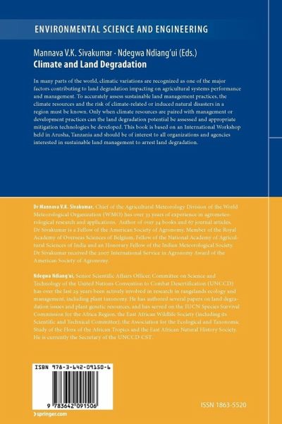 In many parts of the world, climatic variations are recognized as one of the major factors contributing to land degradation impacting on agricultural systems performance and management. To accurately assess sustainable land management practices, the climate resources and the risk of climate-related or induced natural disasters in a region must be known. Only when climate resources are paired with management or development practices can the land degradation potential be assessed and appropriate mitigation technologies be developed. This book is based on an International Workshop held in Arusha, Tanzania and should be of interest to all organizations and agencies interested in sustainable land management to arrest land degradation.