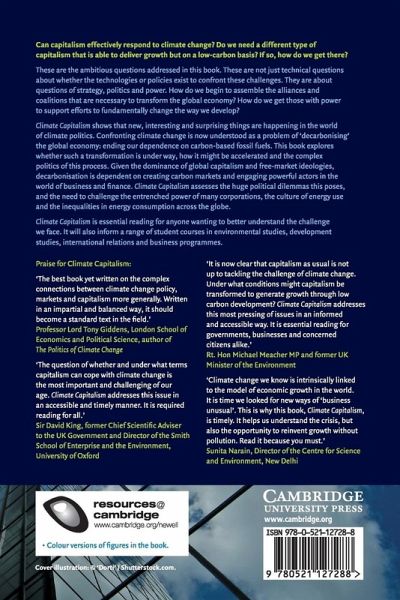Confronting climate change is now understood as a problem of 'decarbonising' the global economy: ending our dependence on carbon-based fossil fuels. This book explores whether such a transformation is underway, how it might be accelerated, and the complex politics of this process. Given the dominance of global capitalism and free-market ideologies, decarbonisation is dependent on creating carbon markets and engaging powerful actors in the world of business and finance. Climate Capitalism assesses the huge political dilemmas this poses, and the need to challenge the entrenched power of many corporations, the culture of energy use, and global inequalities in energy consumption. Climate Capitalism is essential reading for anyone wanting to better understand the challenge we face. It will also inform a range of student courses in environmental studies, development studies, international relations, and business programmes.