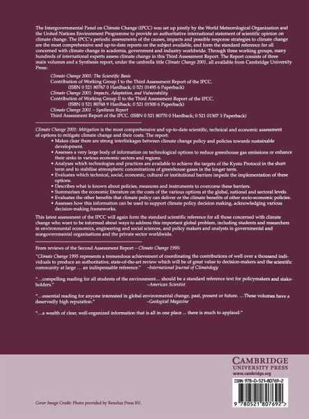 Climate Change 2001: Mitigation is the most comprehensive and up-to-date scientific, technical and economic assessment of options to mitigate climate change and their costs. The report: ¿ Makes clear there are strong inter-linkages between climate change policy and policies towards sustainable development. ¿ Assesses information on technological options to reduce greenhouse gas emissions or enhance their sinks. ¿ Analyses technologies and practices available to achieve the targets of the Kyoto Protocol and stabilise atmospheric concentrations of greenhouse gases. ¿ Evaluates barriers impeding implementation of these options and methods available to overcome them. ¿ Summarises the economic literature on costs of climate change mitigation at global, regional and national levels. ¿ Evaluates the other benefits that climate policy can deliver or the climate benefits of other socio-economic policies. ¿ Assesses how this information can be used to support climate policy decision making, acknowledging various decision-making frameworks. This latest IPCC assessment will again form the standard scientific reference for all concerned with climate change and who want to be informed of ways to address this important global problem: including students and researchers in environmental and social sciences, and policymakers and analysts in governmental and non-governmental organisations and the private sector world-wide.
