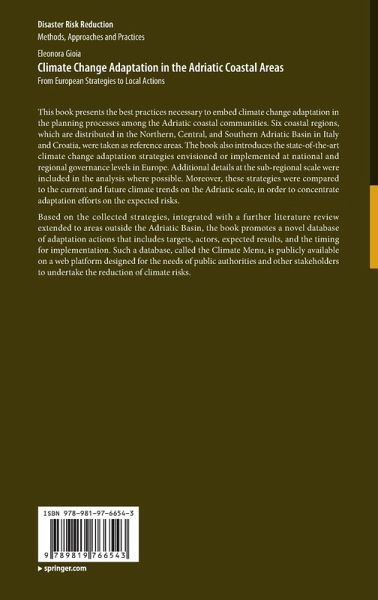 This book presents the best practices necessary to embed climate change adaptation in the planning processes among the Adriatic coastal communities. Six coastal regions, which are distributed in the Northern, Central, and Southern Adriatic Basin in Italy and Croatia, were taken as reference areas. The book also introduces the state-of-the-art climate change adaptation strategies envisioned or implemented at national and regional governance levels in Europe. Additional details at the sub-regional scale were included in the analysis where possible. Moreover, these strategies were compared to the current and future climate trends on the Adriatic scale, in order to concentrate adaptation efforts on the expected risks.