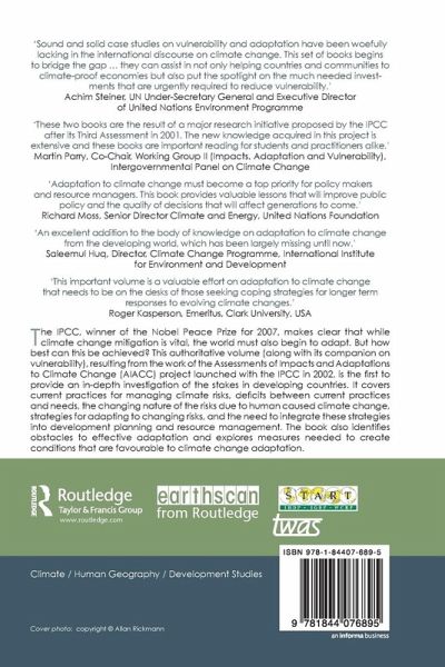 Foreword by R. K. Pachauri * A Stitch in Time: General Lessons from Specific Cases * Adapting Conservation Strategies to Climate Change in Southern Africa * Benefits and Costs of Adapting Water Planning and Management to Climate Change and Water Demand Growth in the Western Cape of South Africa * Indigenous Knowledge, Institutions and Practices for Coping with Variable Climate in the Limpopo Basin of Botswana * Community Development and Coping with Drought in Rural Sudan * Climate, Malaria and Cholera in the Lake Victoria Region: Adapting to Changing Risks * Making Economic Sense of Adaptation in Upland Cereal Production Systems in The Gambia * Past, Present and Future Adaptation by Rural Households of Northern Nigeria * Using Seasonal Weather Forecasts for Adapting Food Production to Climate Variability and Climate Change in Nigeria * Adapting Dryland and Irrigated Cereal Farming to Climate Change in Tunisia and Egypt * Adapting to Drought, Zud and Climate Change in Mongolia's Rangelands * Evaluation of Adaptation Options for the Heihe River Basin of China * Strategies for Managing Climate Risks in the Lower Mekong River Basin: A Place-based Approach * Spillovers and Trade-offs of Adaptation in the Pantabangan-Carranglan Watershed of the Philippines * Top-down, Bottom-up: Mainstreaming Adaptation in Pacific Island Townships * Adapting to Dengue Risk in the Caribbean * Adaptation to Climate Trends: Lessons from the Argentine Experience * Local Perspectives on Adaptation to Climate Change: Lessons from Mexico and Argentina * Maize and Soybean Cultivation in Southeastern South America: Adapting to Climate Change * Fishing Strategies for Managing Climate Variability and Change in the Estuarine Front of the R o de la Plata * Index