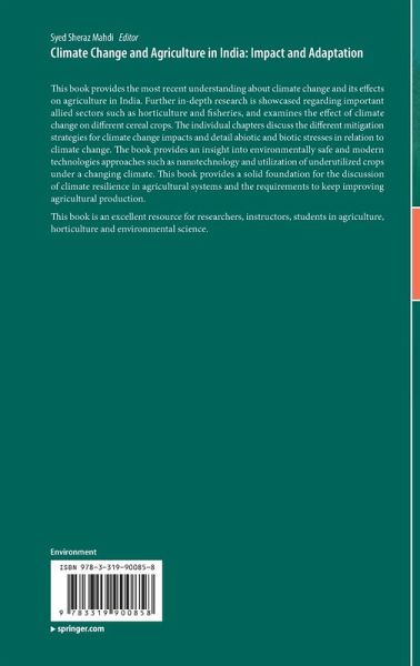 This book provides the most recent understanding about climate change and its effects on agriculture in India. Further in-depth research is showcased regarding important allied sectors such as horticulture and fisheries, and examines the effect of climate change on different cereal crops. The individual chapters discuss the different mitigation strategies for climate change impacts and detail abiotic and biotic stresses in relation to climate change. The book provides an insight into environmentally safe and modern technologies approaches such as nanotechnology and utilization of underutilized crops under a changing climate. This book provides a solid foundation for the discussion of climate resilience in agricultural systems and the requirements to keep improving agricultural production.