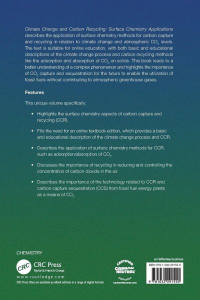 This book describes the application of surface chemistry methods for carbon capture and recycling as related to climate change and CO2 concentration increase in the air. This online educational textbook addresses the importance of CO2 capture and sequestration for the future to use fossil fuels without contributing to atmospheric greenhouse gases.