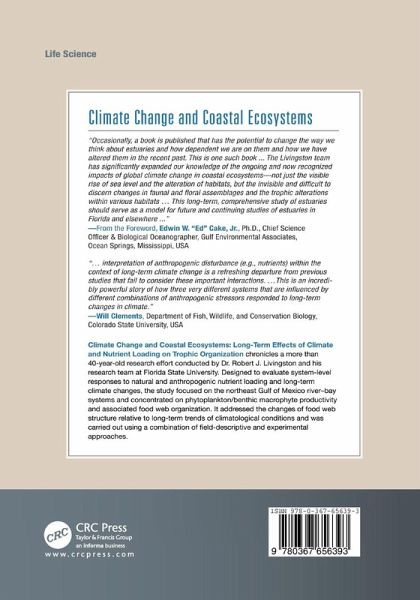 Produced by a Leading Aquatic Scientist A narrative account of how estuaries around the world are being altered by human forces and human-induced global climate changes, Climate Change and Coastal Ecosystems: Long-Term Effects of Climate and Nutrient Loading on Trophic Organization chronicles a more than 40-year-old research effort conducted by Dr. Robert J. Livingston and his research team at Florida State University. Designed to evaluate system-level responses to natural and anthropogenic nutrient loading and long-term climate changes, the study focused on the northeast Gulf of Mexico river-bay systems, and concentrated on phytoplankton/benthic macrophyte productivity and associated food web organization. It addressed the changes of food web structure relative to long-term trends of climatological conditions, and was carried out using a combination of field-descriptive and experimental approaches. Details Climate Change, Climate Change Effects, and Eutrophication This book includes comparative analyses of how the trophic organization of different river-bay ecosystems responded to variations of both anthropogenic impacts and natural driving factors in space and time. It incorporates a climate database and evaluates the effects of climate change in the region. It also provides insights into the effects of nutrient loading and climate on the trophic organization of coastal systems in other global regions. Presents research compiled from consistent field sampling methods and detailed taxonomic identifications over an extended period of study Includes the methods and materials that the research team used to access the health and trophic organization of Florida's estuaries Provides an up-to-date bibliography of estuarine publications and reports Based on a longitudinal study of anthropogenic and natural driving factors on river-estuarine systems in the northeast Gulf of Mexico, Climate Change and Coastal Ecosystems: Long-Term Effects of Climate and Nutrient Loading on Trophic Organization is useful as a reference for researchers working on riverine, estuarine, and coastal marine systems.