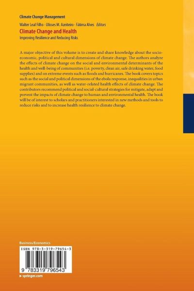 A major objective of this volume is to create and share knowledge about the socio-economic, political and cultural dimensions of climate change. The authors analyze the effects of climate change on the social and environmental determinants of the health and well-being of communities (i.e. poverty, clean air, safe drinking water, food supplies) and on extreme events such as floods and hurricanes. The book covers topics such as the social and political dimensions of the ebola response, inequalities in urban migrant communities, as well as water-related health effects of climate change. The contributors recommend political and social-cultural strategies for mitigate, adapt and prevent the impacts of climate change to human and environmental health. The book will be of interest to scholars and practitioners interested in new methods and tools to reduce risks and to increase health resilience to climate change.