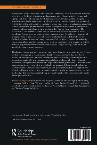 Synonymous with catastrophe and destructive tendencies, the Anthropocene provokes reflection on the limits of existing applications of ideas of responsibility, ecological agency and democratic justice. Youth campaigners, in particular, make emerging insights on the Anthropocene of central importance to an intersubjectively generated redefinition of the just society of the future. Given their span of affectedness, escalating rates of greenhouse gas emissions shape the ecological circumstances of generations to come and implicate them in harm relations they had no hand in creating. The realization is that human-inspired climate-destructive practices reverberate across plural time frames, thereby raising serious questions about the value of conventional interpretations of the copresence of sources of climate harm and their effects on the health and environmental living standards of all peoples. If injuries provoked by environmental degradation emerge across multiple time frames and affect generations differentially, where do we draw the boundaries of the just society, and how do we identify its most relevant subjects? This book explores how such questions have ignited one of the most important debates on democratic justice in recent years - that between generations. For mobilized youth and future justice coalitions campaigning internationally, expanding resource inequalities (regionally and intergenerationally) are fundamentally issues of unfair exclusions and asymmetries in relations of power between generations. The book offers a comprehensive overview of new insights being generated through such debate on the limitations of democratic presentism, as well as current institutional applications of civil and human rights norms. It assesses overall how the metapolitical relevance of modernity's democratic project is being creatively redefined in terms more relevant to Anthropocene futures.