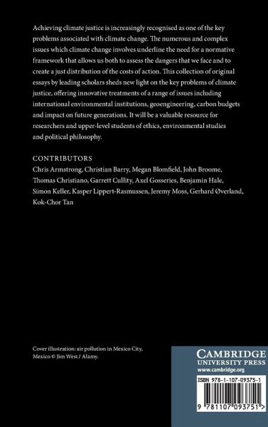Achieving climate justice is increasingly recognized as one of the key problems associated with climate change, helping us to determine how good or bad the effects of climate change are, and whether any harms are fairly distributed. The numerous and complex issues which climate change involves underline the need for a normative framework that allows us both to assess the dangers that we face and to create a just distribution of the costs of action. This collection of original essays by leading scholars sheds new light on the key problems of climate justice, offering innovative treatments of a range of issues including international environmental institutions, geoengineering, carbon budgets, and the impact on future generations. It will be a valuable resource for researchers and upper-level students of ethics, environmental studies, and political philosophy.