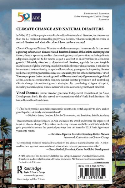 The start of the new millennium will be remembered for deadly climate-related disasters - the great floods in Thailand in 2011, Super Storm Sandy in the United States in 2012, and Typhoon Haiyan in the Philippines in 2013, to name a few. In 2014, 17.5 million people were displaced by climate-related disasters, ten times more than the 1.7 million displaced by geophysical hazards. What is causing the increase in natural disasters and what effect does it have on the economy? Climate Change and Natural Disasters sends three messages: human-made factors exert a growing influence on climate-related disasters; because of the link to anthropogenic factors, there is a pressing need for climate mitigation; and prevention, including climate adaptation, ought not to be viewed as a cost to economic growth but as an investment. Ultimately, attention to climate-related disasters, arguably the most tangible manifestation of global warming, may help mobilize broader climate action. It can also be instrumental in transitioning to a path of low-carbon, green growth, improving disaster resilience, improving natural resource use, and caring for the urban environment. Vinod Thomas proposes that economic growth will become sustainable only if governments, political actors, and local communities combine natural disaster prevention and controlling climate change into national growth strategies. When considering all types of capital, particularly human capital, climate action can drive economic growth, rather than hinder it.