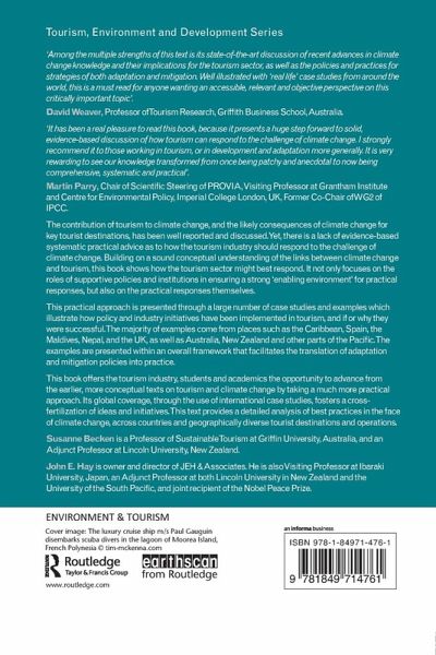 The contribution of tourism to climate change and the likely effects of climate change on tourist destinations have been well reported and discussed, however there is a lack of evidence-based systematic advice as to how the industry should respond. This book addresses the gap between our increasing understanding of the drivers and consequences of climate change, and practical advice for mitigation and adaptation. This text acknowledges the importance of a sound conceptual understanding of climate change and considers how the industry might best respond. This approach relies upon the roles of supportive policies and institutions and is presented through critically assessed case studies from across the world. These examples support an overall framework which provides a methodology for translating adaptation and mitigation policies into practice.