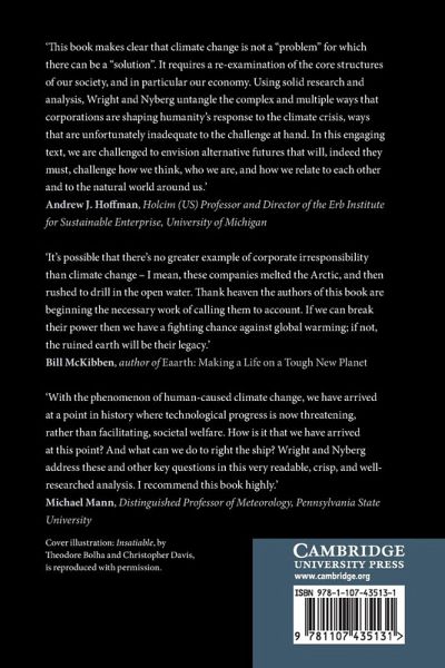 Foreword Clive Hamilton Acknowledgements 1. Climate change and corporate capitalism 2. Creative self-destruction and the incorporation of critique 3. Climate change and the corporate construction of risk 4. Corporate political activity and climate coalitions 5. Justification, compromise and corruption 6. Climate change, managerial identity and narrating the self 7. Emotions, corporate environmentalism and climate change 8. Political myths and pathways forward 9. Imagining alternatives Appendix References Index.