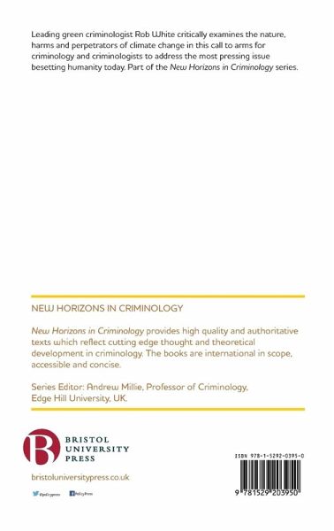 Leading green criminologist Rob White asks what can be learned from the problem-solving focus of crime prevention to help face the challenges of climate change in this call to arms for criminology and criminologists. Industries such as energy, food and tourism and the systematic destruction of the environment through global capitalism are scrutinized for their contribution to global warming. Ideas of ‘state-corporate crime’ and 'ecocide’ are introduced and explored in this concise overview of criminological writings on climate change. This sound and robust application of theoretical concepts to this ‘new’ area also includes commentary on topical issues such as the US withdrawal from the Paris Climate agreement. Part of the New Horizons in Criminology series, which draws on the inter-disciplinary nature of criminology and incorporates emerging perspectives like social harm, gender and sexuality, and green criminology.