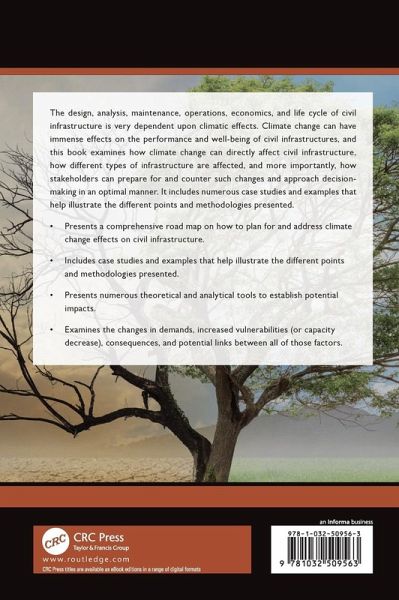 Climate change can have immense effects on the performance and wellbeing of civil infrastructures, and this book examines how climate change can affect civil infrastructure, how different types of infrastructure are affected, and how stakeholders can prepare for and counter such changes and approach decision making in an optimal manner.