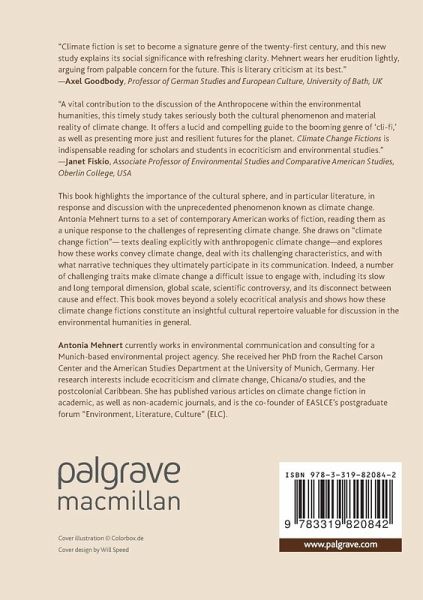 This book highlights the importance of the cultural sphere, and in particular literature, in response and discussion with the unprecedented phenomenon known as climate change. Antonia Mehnert turns to a set of contemporary American works of fiction, reading them as a unique response to the challenges of representing climate change. She draws on "climate change fiction"- texts dealing explicitly with anthropogenic climate change-and explores how these works convey climate change, deal with its challenging characteristics, and with what narrative techniques they ultimately participate in its communication. Indeed, a number of challenging traits make climate change a difficult issue to engage with including its slow and long temporal dimension, global scale, scientific controversy, and its disconnect between cause and effect. Considering such complexity and uncertainty at the source of climate change fictions, this book moves beyond a solely ecocritical analysis and shows how these climate change fictions constitute an insightful cultural repertoire valuable for discussion in the environmental humanities in general.