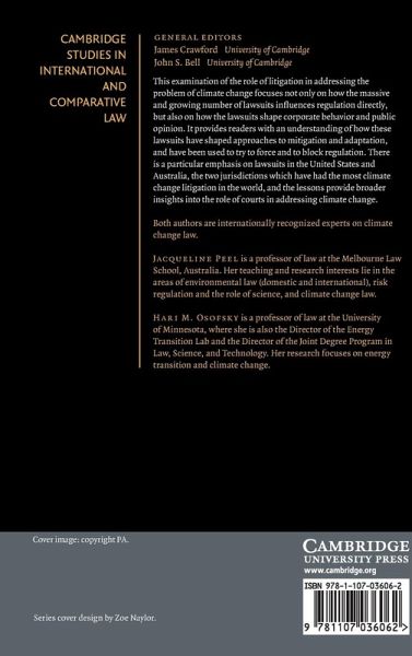 This examination of the role of litigation in addressing the problem of climate change focuses not only on how the massive and growing number of lawsuits influences regulation directly, but also on how the lawsuits shape corporate behaviour and public opinion. It provides readers with an understanding of how these lawsuits have shaped approaches to mitigation and adaptation, and have been used to try to force and to block regulation. There is a particular emphasis on lawsuits in the United States and Australia, the two jurisdictions which have had the most climate change litigation in the world, and the lessons provide broader insights into the role of courts in addressing climate change.