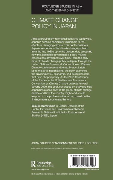Amidst growing environmental concerns worldwide, Japan is seen as particularly vulnerable to the effects of a changing climate. This book considers Japan's response to the climate change problem from the late 1980s up to the present day. As the 2015 international climate change conference projects beyond 2020, the book concludes by analyzing how Japan has placed itself in the global climate change debate and how the country might and should respond to the problem in the future. This is the first book to explore Japan's climate change policy over three decades and will interest students and scholars of Japanese Studies, Comparative Politics, and Climate Change Policy.