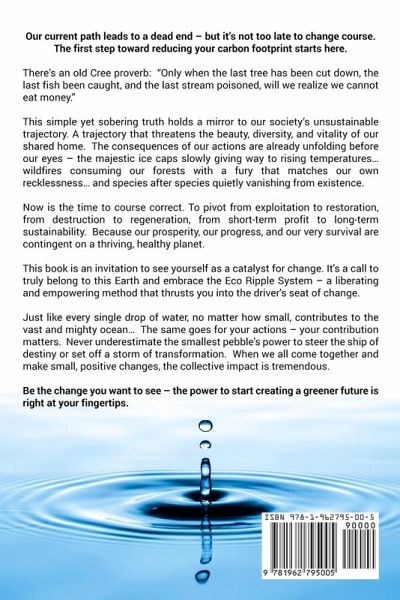 Our current path leads to a dead end - but it's not too late to change course. The first step toward reducing your carbonfootprint starts here. There's an old Cree proverb: "Only when the last tree has been cut down, the last fish been caught, and the last stream poisoned, will we realize we cannot eat money." This simple yet sobering truth holds a mirror to our society's unsustainable trajectory. A trajectory that threatens the beauty, diversity, and vitality of our shared home. The consequences of our actions are already unfolding before our eyes - the majestic ice caps slowly giving way to rising temperatures... Once vibrant corals now standing pale and lifeless... wildfires consuming our forests with a fury that matches our own recklessness... and species after species quietly vanishing from existence. And yet, if there's anything to be learned from the wisdom of the Earth, it's the resilience of life. Isn't it remarkable how life boldly steps up from the ashes, reborn and renewed, every time a forest fire scorches the land?... How the blush of spring always follows the harshness of winter... And how even the bone-dry desert and the icy depths of the ocean teem with life. You see, life, in its wonderful tenacity, always finds a way to press on. We, humans, are no different. History is a testament to our capacity to overcome great feats and achieve amazing things... when we put our collective minds to it. Now is the time to course correct. To pivot from exploitation to restoration, from destruction to regeneration, from short-term profit to long-term sustainability. Because our prosperity, our progress, and our very survival are contingent on a thriving, healthy planet. This book is an invitation to see yourself as a catalyst for change. It's a call to truly belong to this Earth, and care for her as she has cared for you. Inside, here's a fraction of what you'll discover:The Eco Ripple System - a liberating and empowering method that thrusts you into the driver's seat of change The pivotal role of governments in climate change action... use these insights to champion larger-scale solutions The hidden sources of greenhouse gases - including a free mobile app that's taking a staggering toll on Mother Nature Successful initiatives by industry leaders that prove profitability can coexist with stewardship Strategies to leverage your consumer influence to encourage corporate shifts toward eco-friendly practices The surprising economic opportunities presented by climate action, and how you can be an active participant in the green economy wave 10 actionable steps to tweak your diet for a smaller carbon footprint Inspiring stories of individuals who initiated small changes that created powerful ripples of positive impact 101 easy-to-implement steps to a greener lifestyle, without completely overhauling your life And much more. Never underestimate the power of even the tiniest change. Remember, every single drop of water, no matter how small, contributes to the vast and mighty ocean. The same goes for your actions - your contribution matters. When we all come together and make small, positive changes, the collective impact is tremendous.Be the change you want to see. The power to start creating a greener future is right at your fingertips: Scroll up and click "Add to Cart" right now.